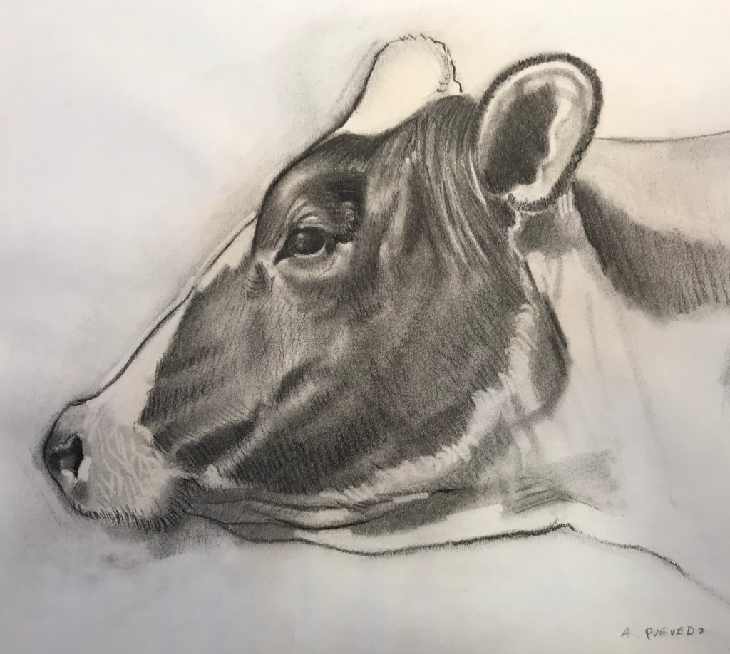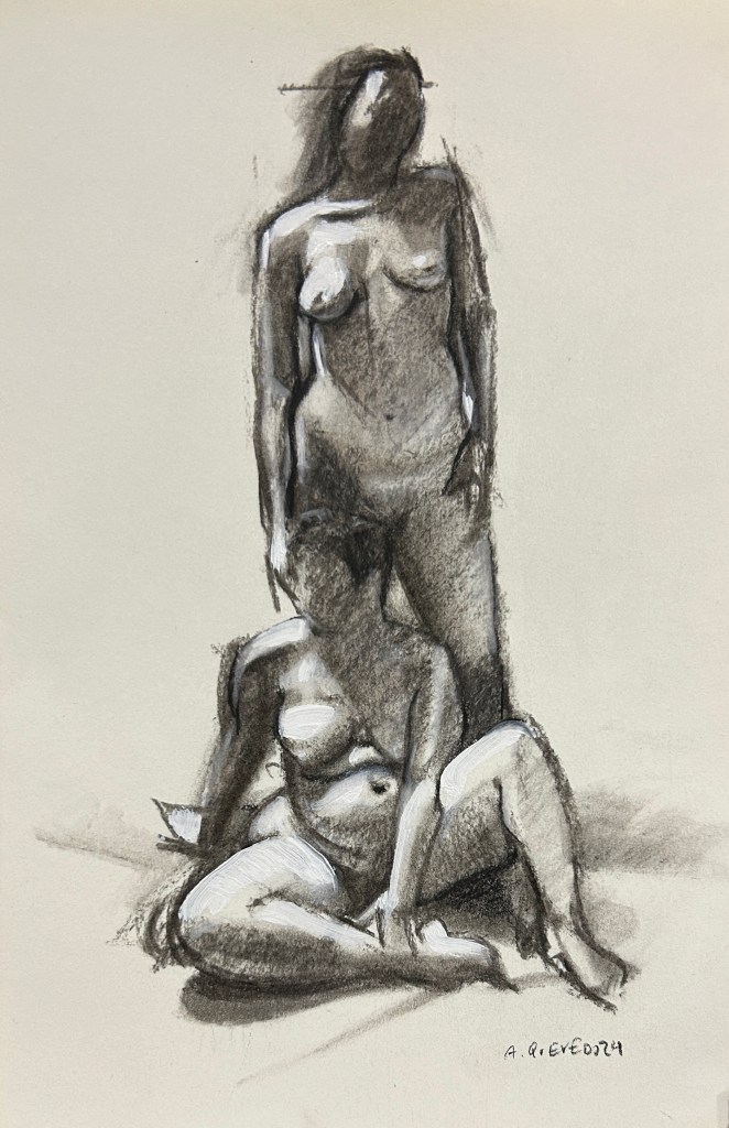 He trabajado con dos técnicas principales: carboncillo sobre papel y óleo sobre lienzo. Cada una me ofrece un lenguaje distinto para expresar inquietudes, gustos e intereses, y todas juntas conforman un mosaico de lo que soy y de lo que quiero compartir.